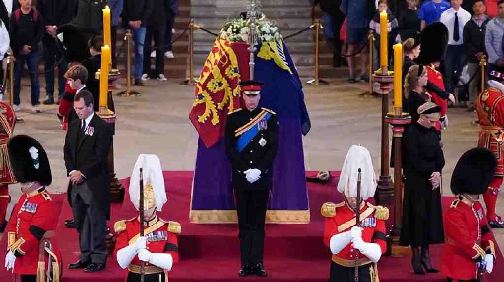 在女王国葬之前,她的八个孙辈围着她的棺材进行了守夜仪式,在他们周围则是排着长队,最长等待了17小时前来送别女王的人们,他们长时间排队就是为了与王室的孙子们分享威斯敏斯特大厅的寂静一刻。