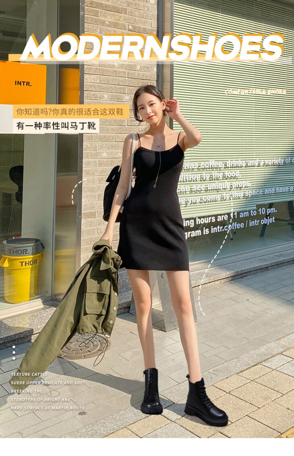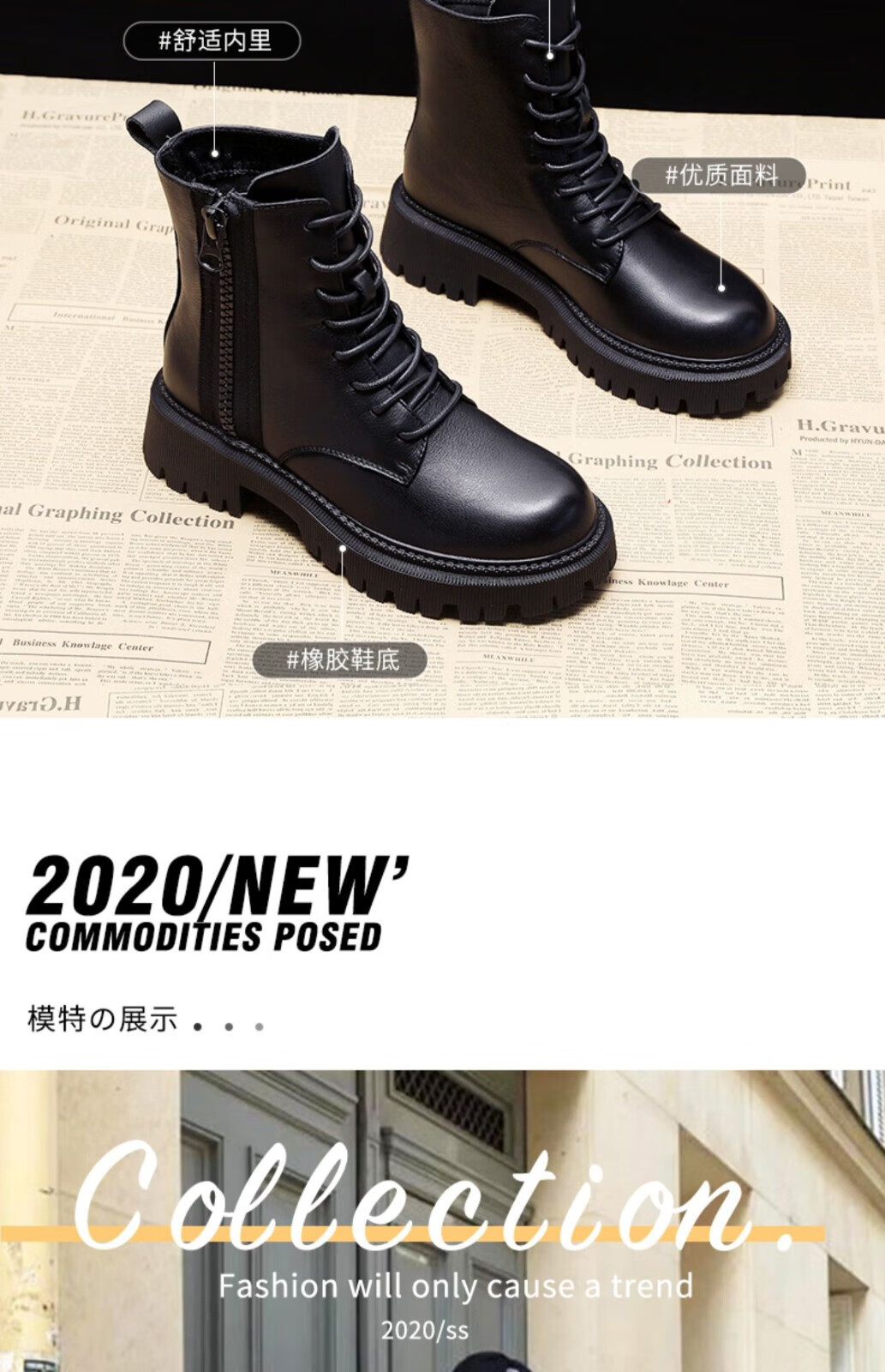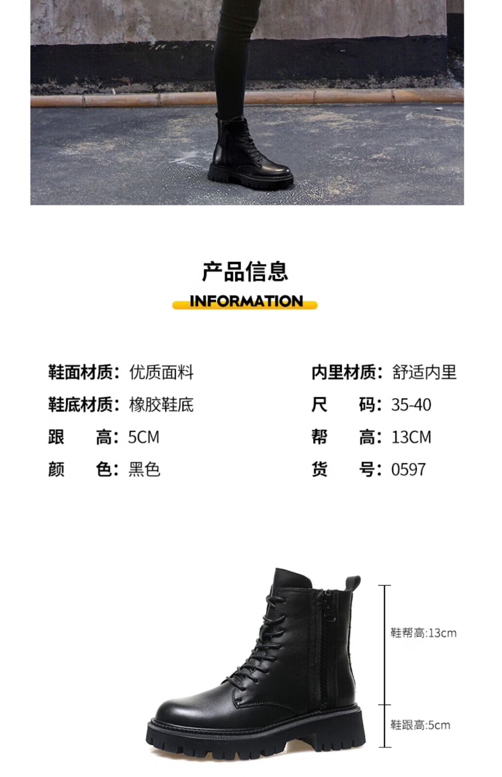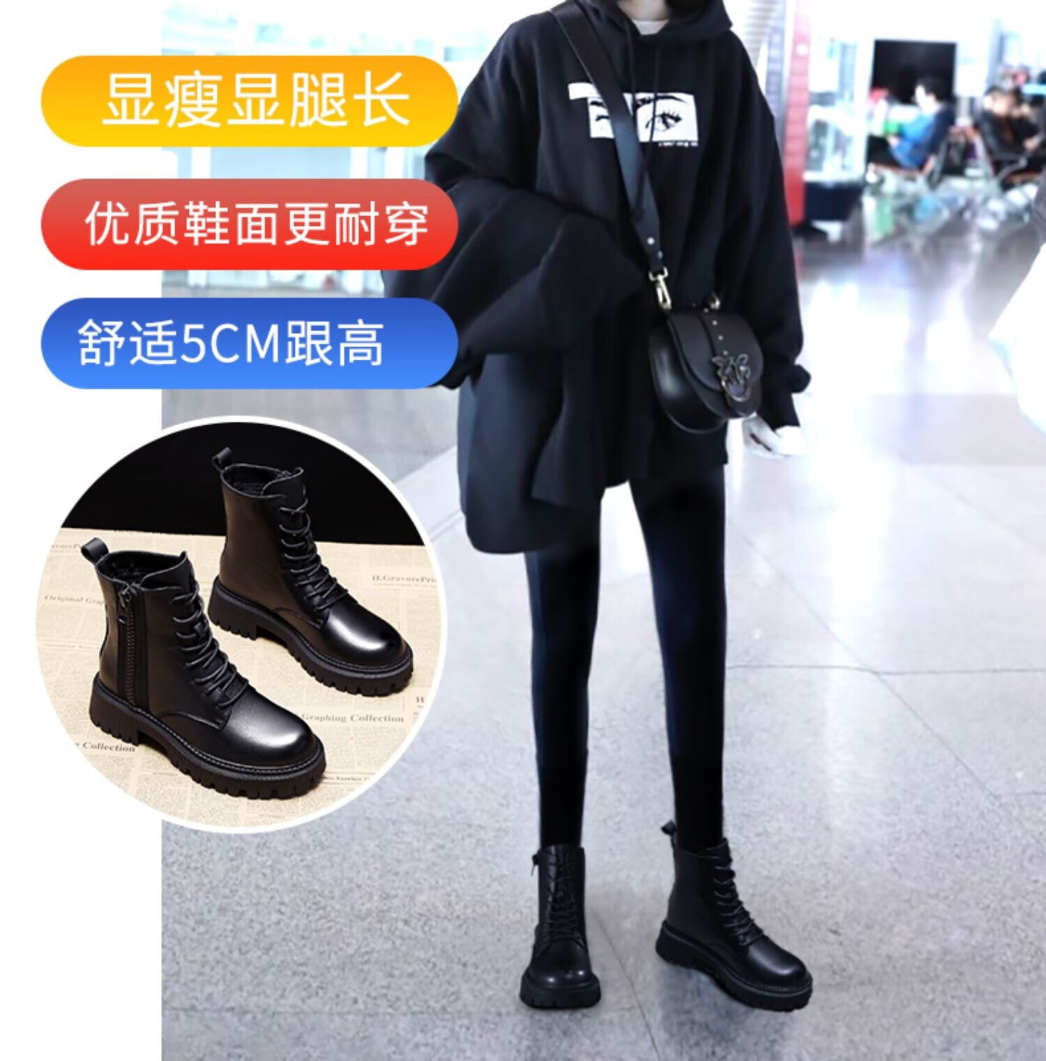 商品名称:TizzGiri 2022秋季新款马丁靴女鞋英伦风百搭厚底新品时尚潮流短靴ins潮短筒靴 黑色(单里) 39