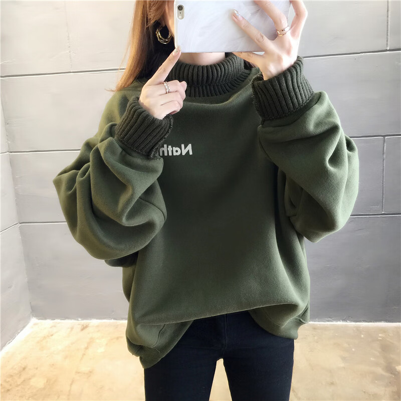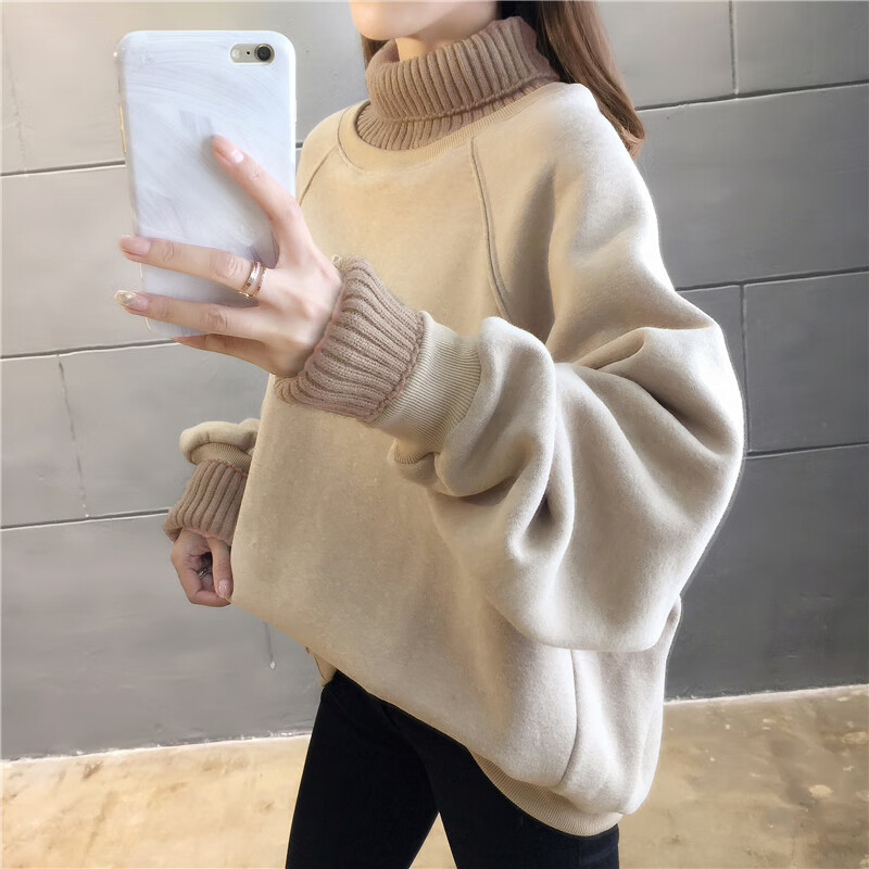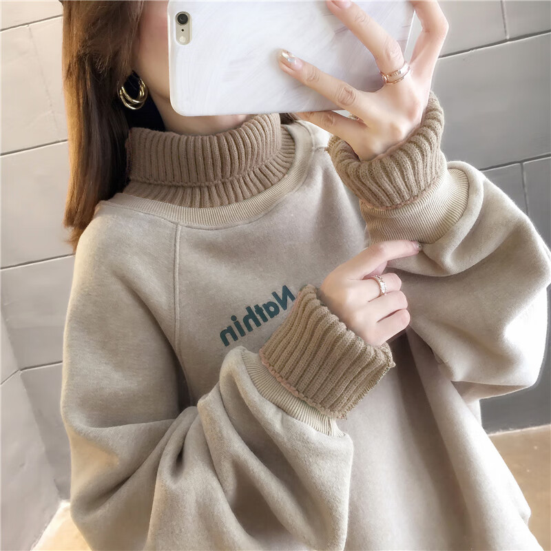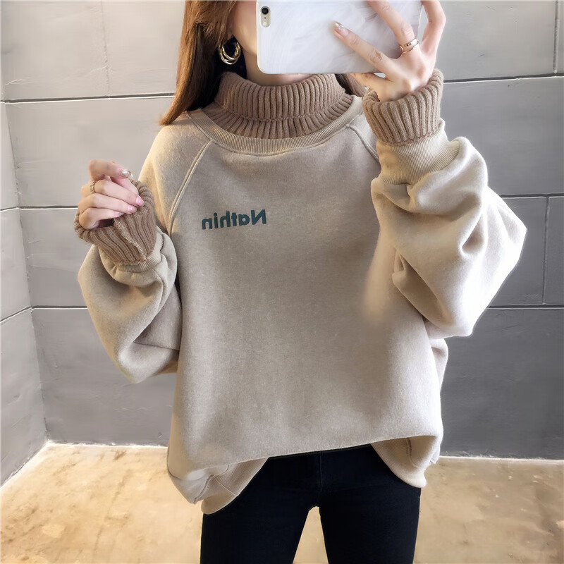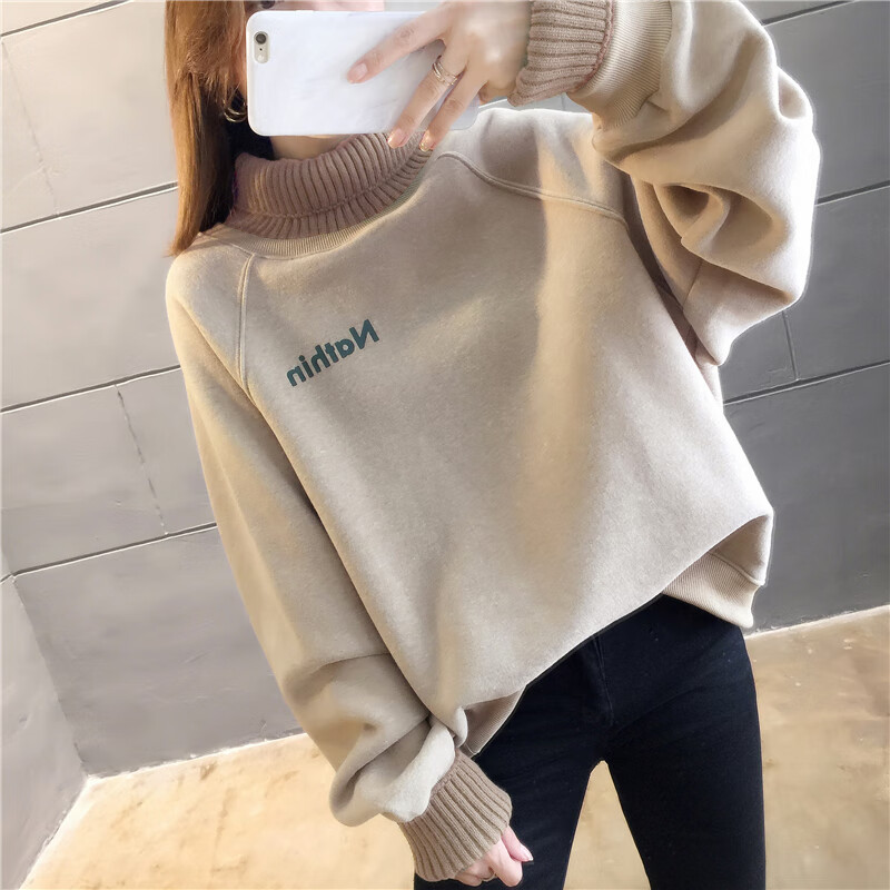 商品名称:TCDCWJX加绒加厚慵懒风上衣加绒卫衣女厚港风学生 杏色 L