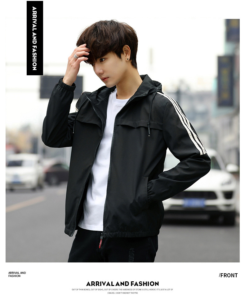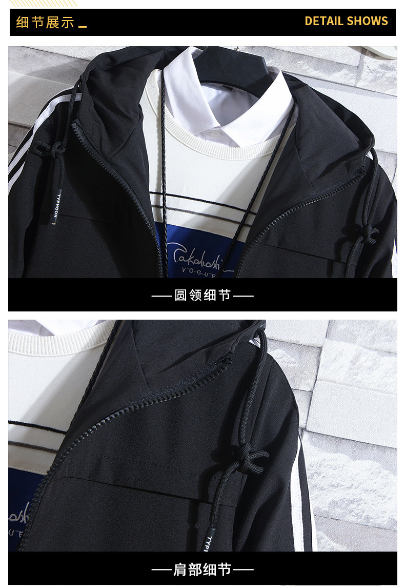 外套男士连帽夹克春秋款2020新款韩版潮流休闲上衣服男装长袖外穿 黑色 652 潮 XXL
