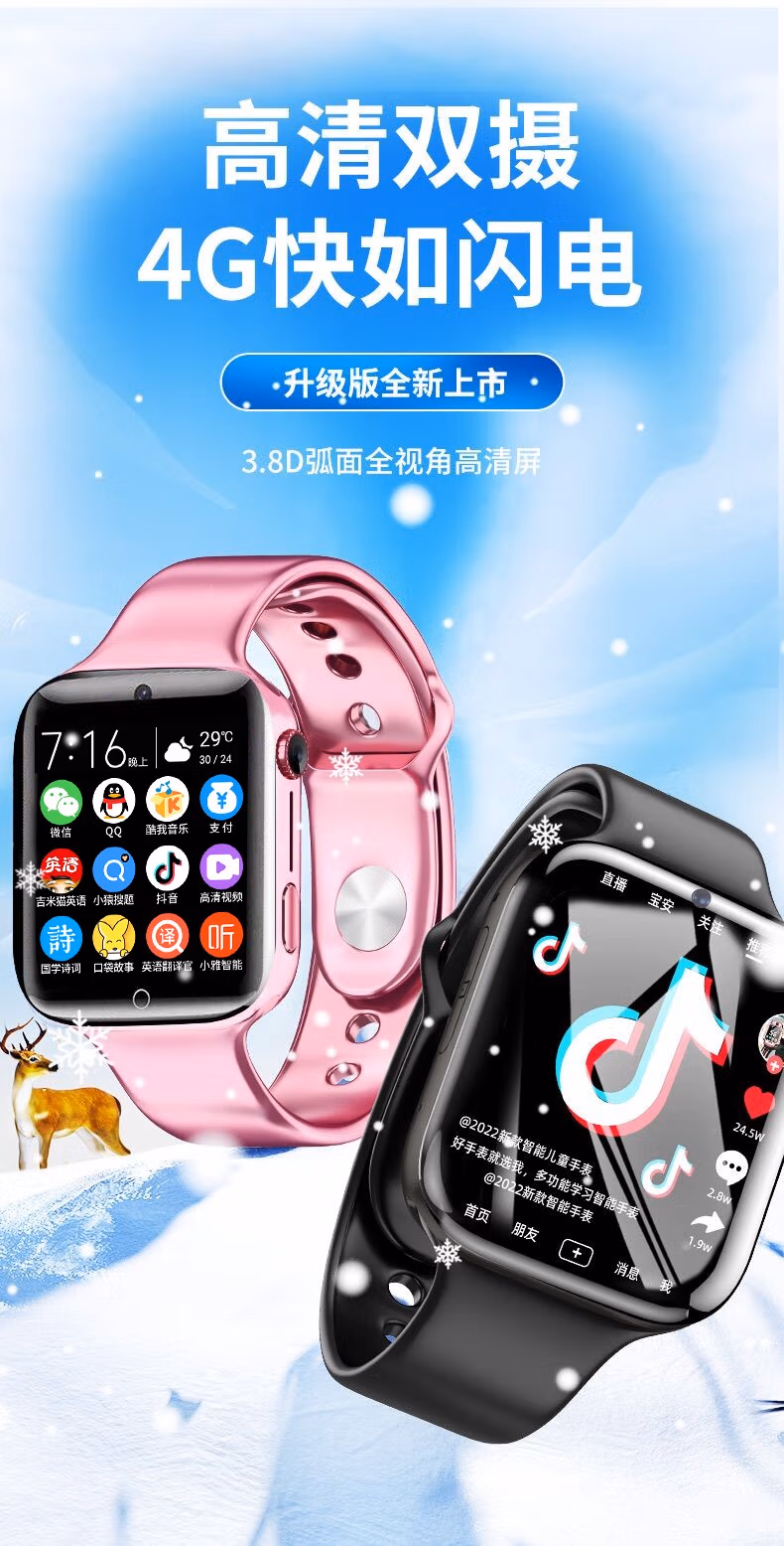 智力快车 华强北S7电话手表顶配4G5G中学生青少年初中生高中生全网通连WIFI防水定位儿童智能手表 高配版黑色+微信抖音+高清双摄+学习软件+人脸识别