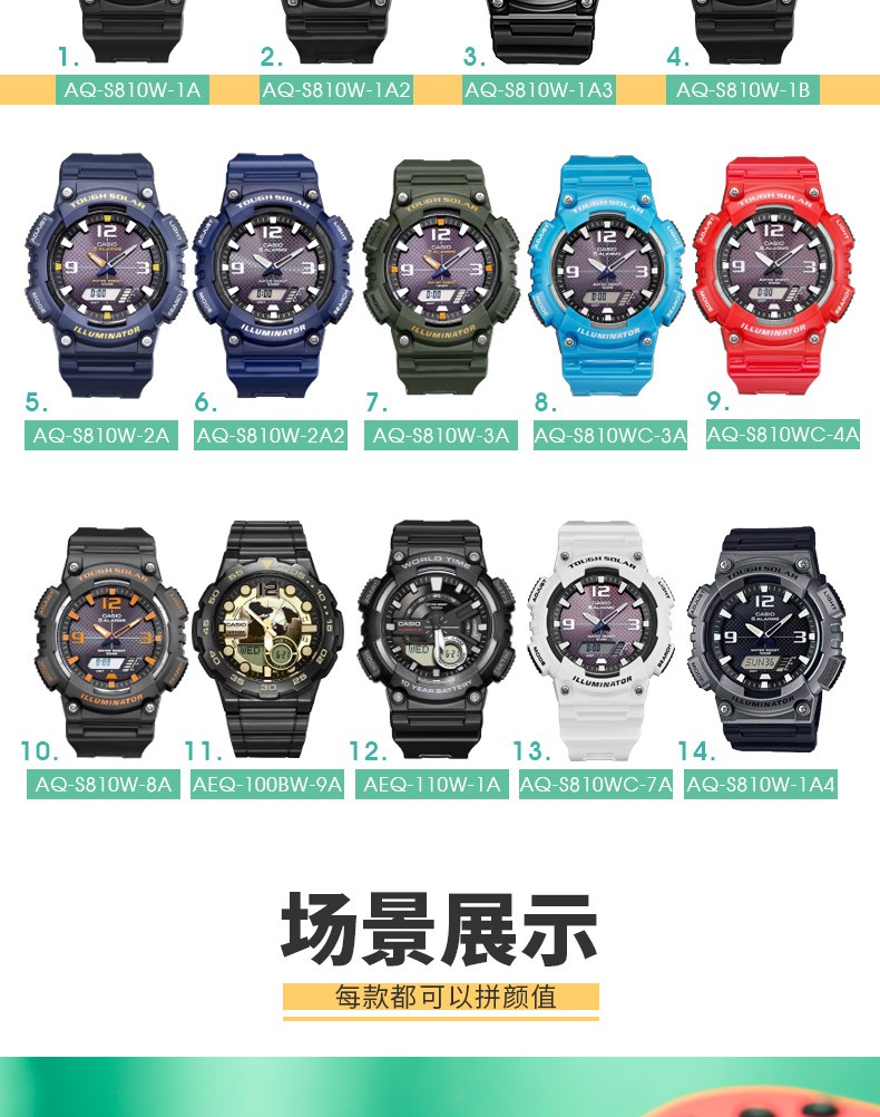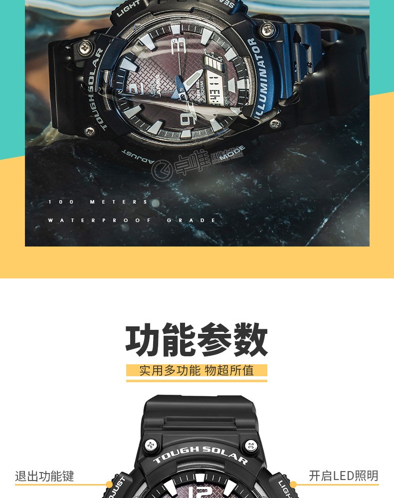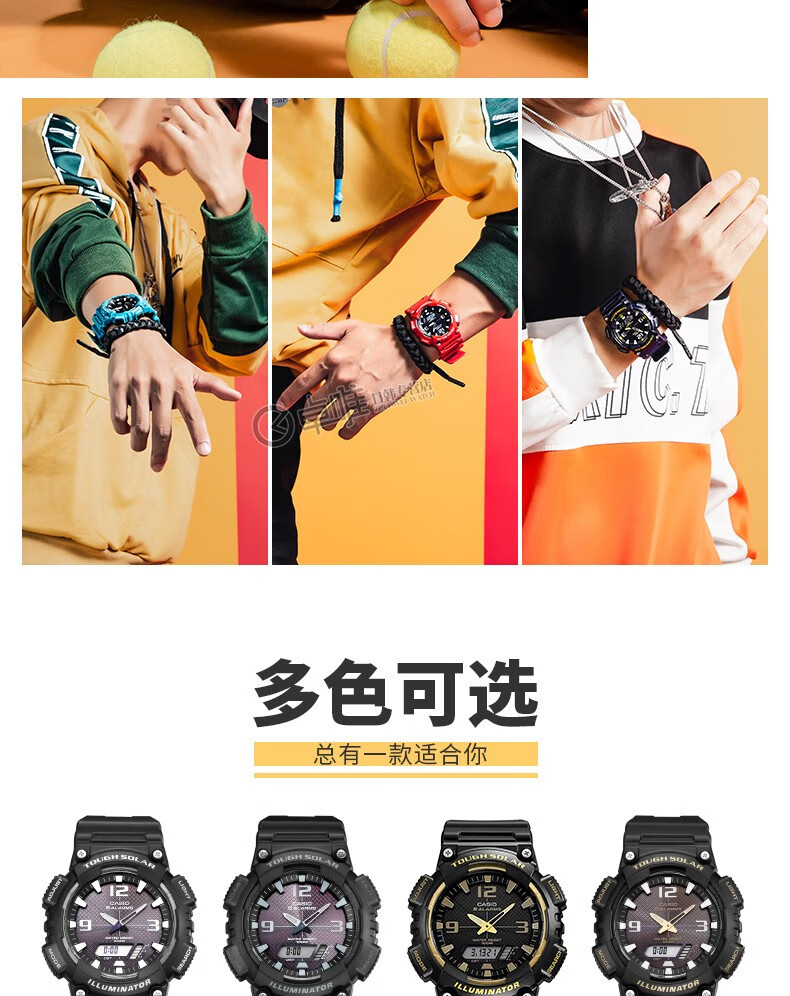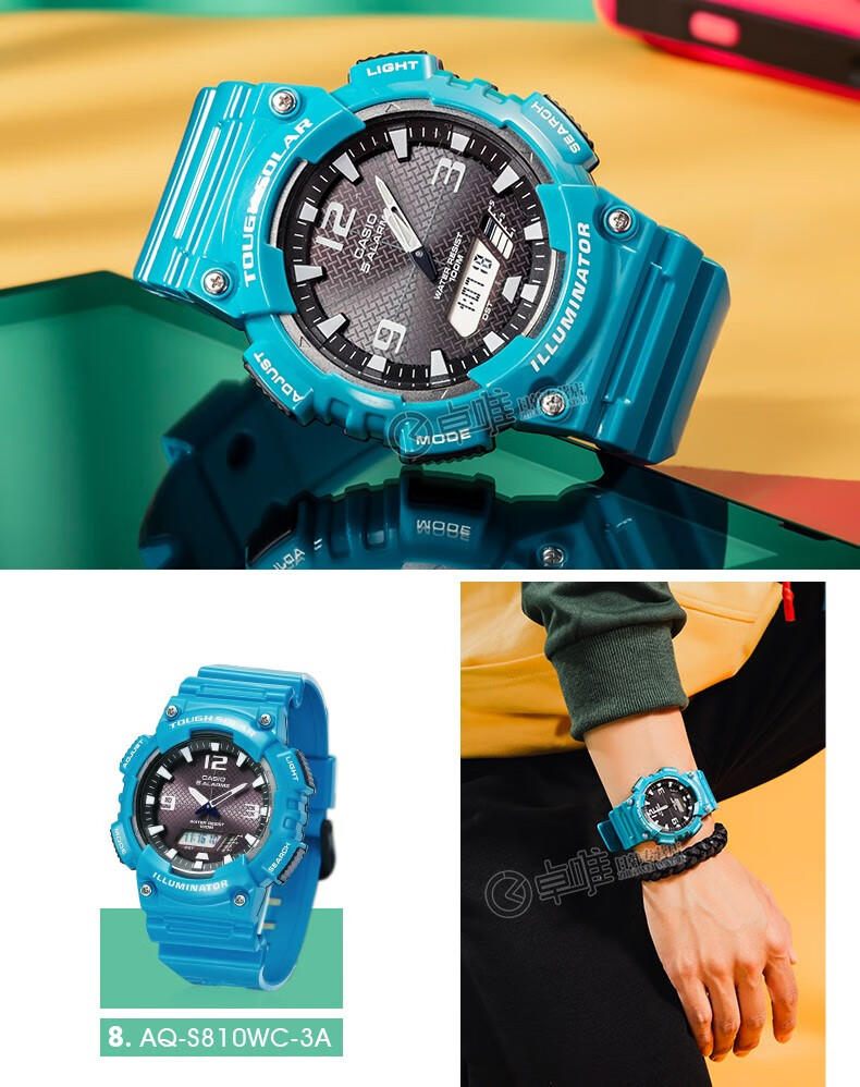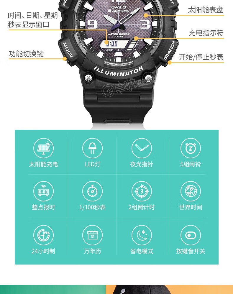 商品名称:卡西欧(CASIO) 运动手表男太阳能双显防水运动电子学生表送男友女友礼物 太阳能夜光AQ-S810W-1A