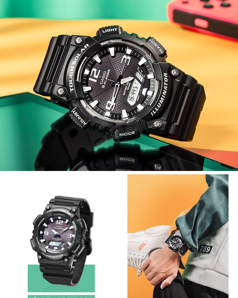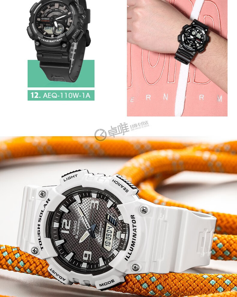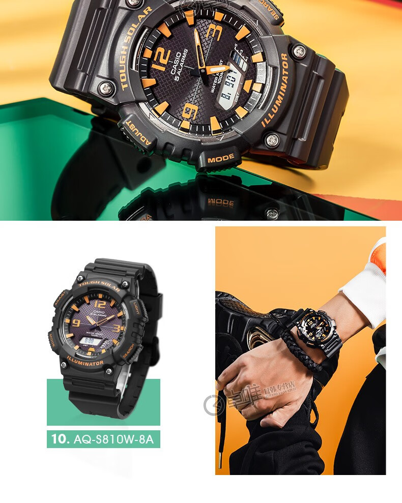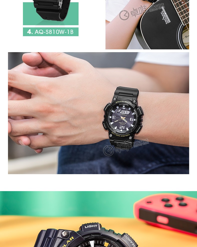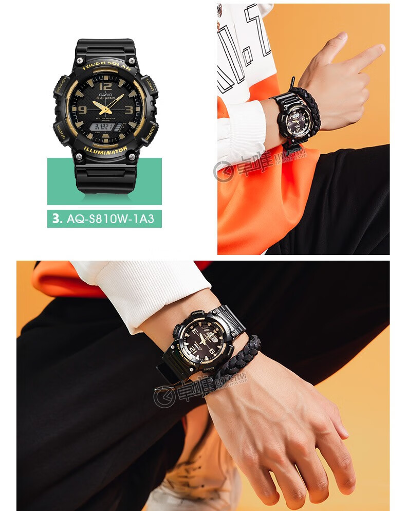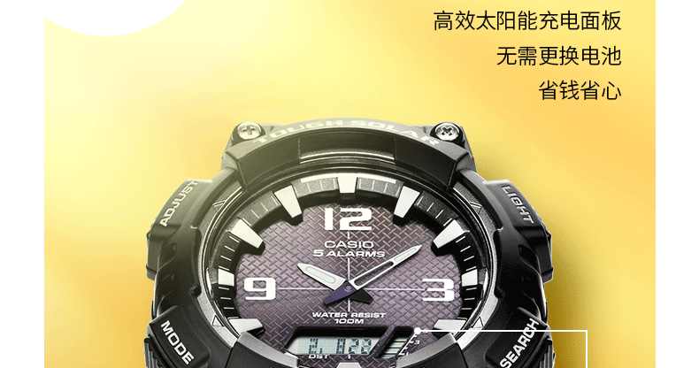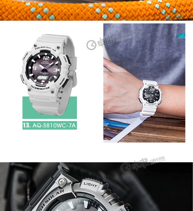 卡西欧(CASIO) 运动手表男太阳能双显防水运动电子学生表送男友女友礼物 太阳能夜光AQ-S810W-1A