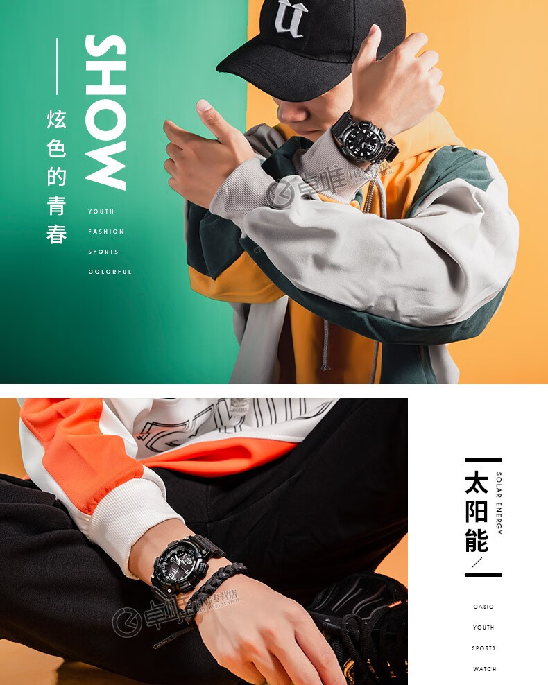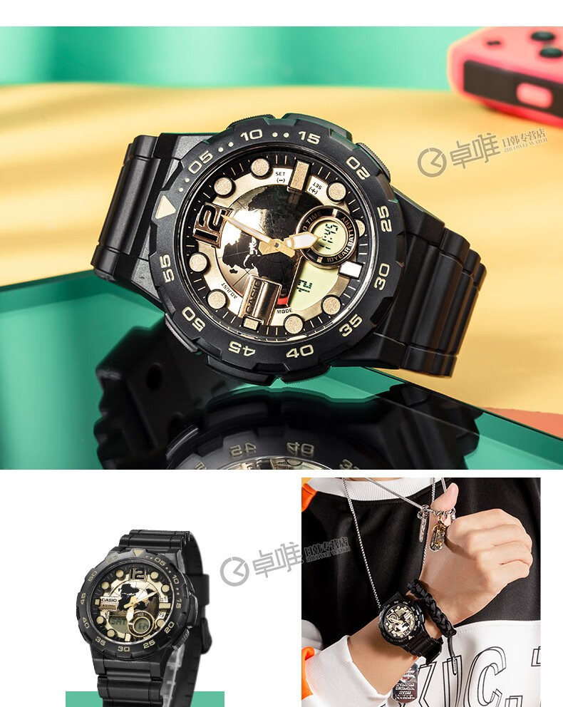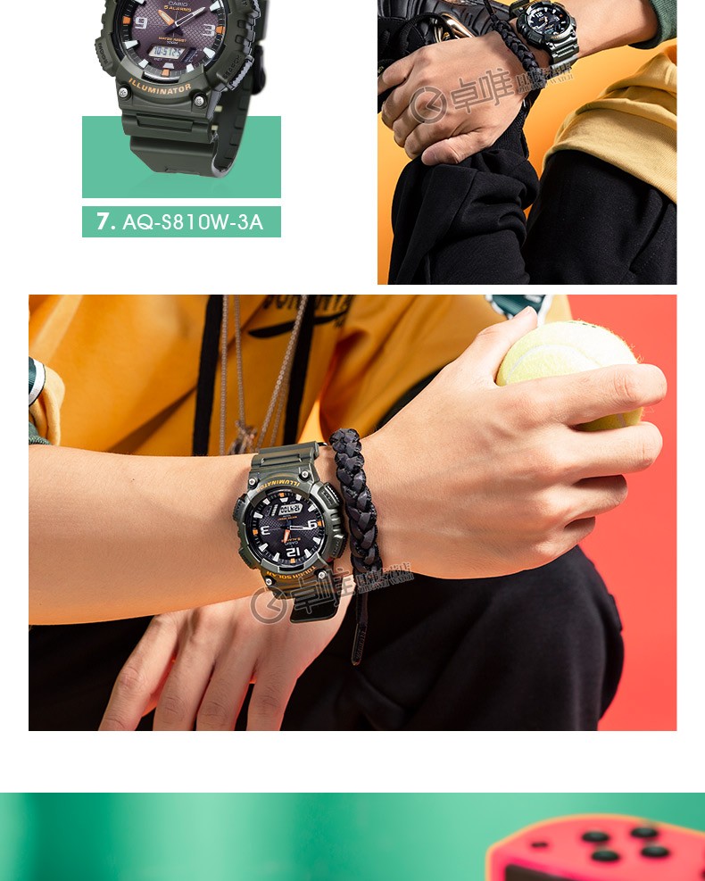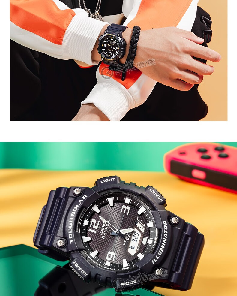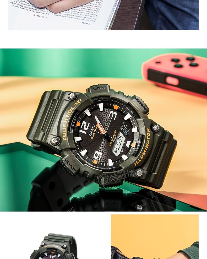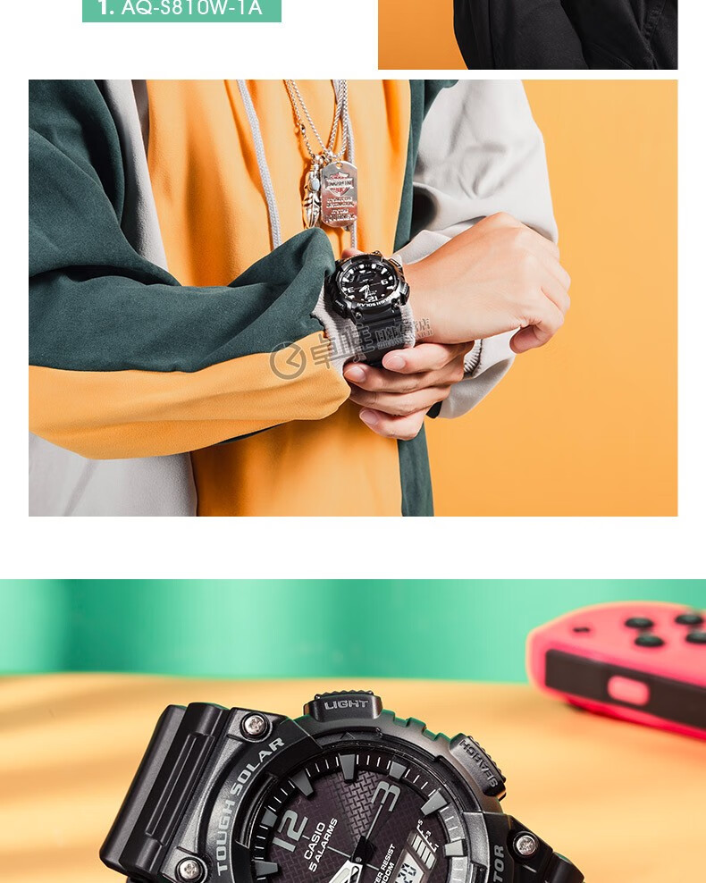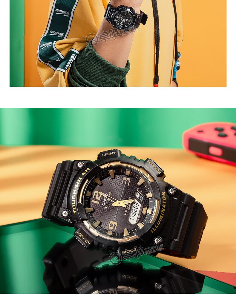 卡西欧(CASIO) 运动手表男太阳能双显防水运动电子学生表送男友女友礼物 太阳能夜光AQ-S810W-1A