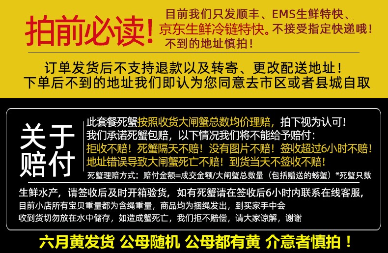 商家位置购买须知本单详情用户评价(0)【活蟹】12只大闸蟹鲜活现货特大公母螃蟹活物新鲜湖蟹河蟹公海鲜水产脆语言官方旗舰店 泡沫保鲜箱12只 精选12只鲜活尝鲜大闸蟹