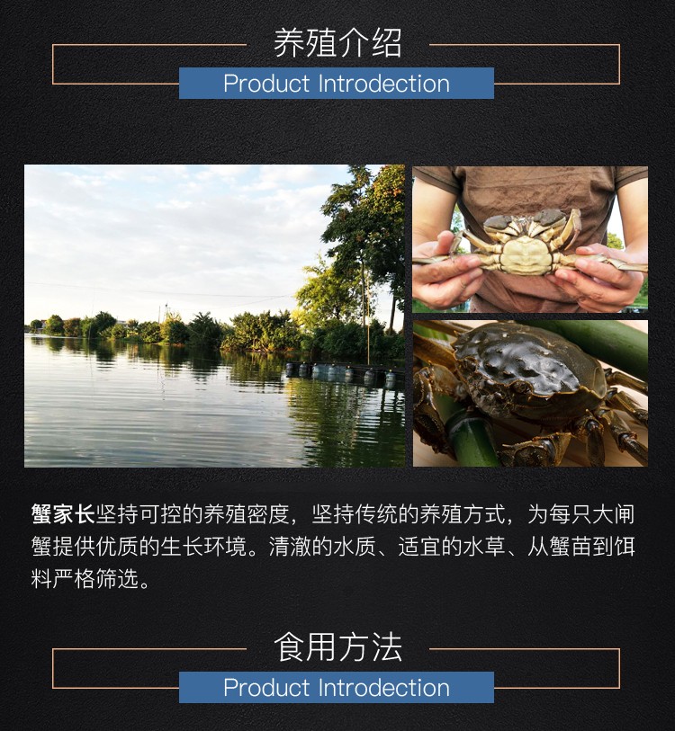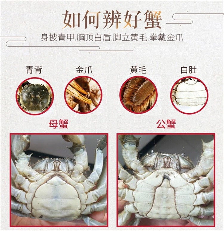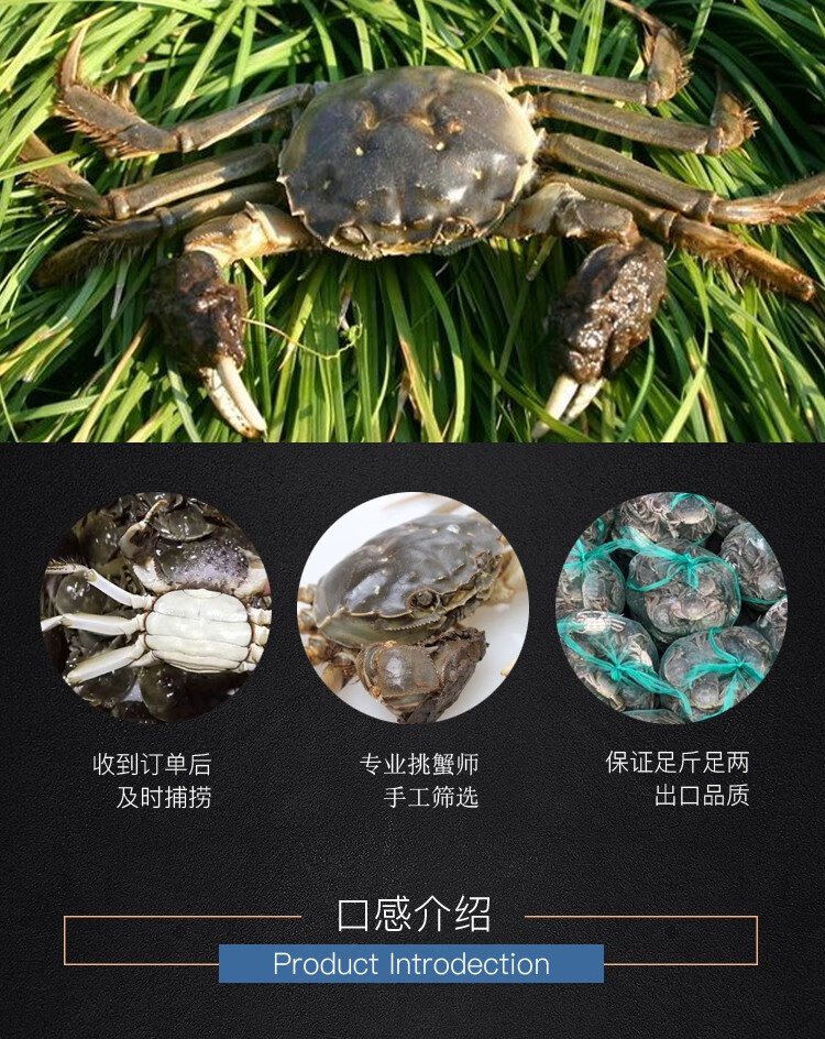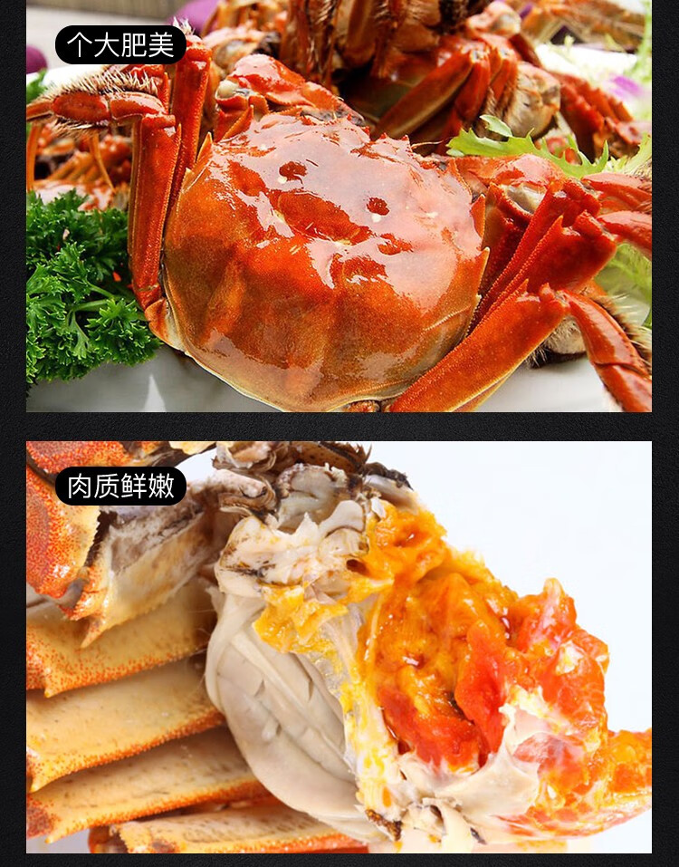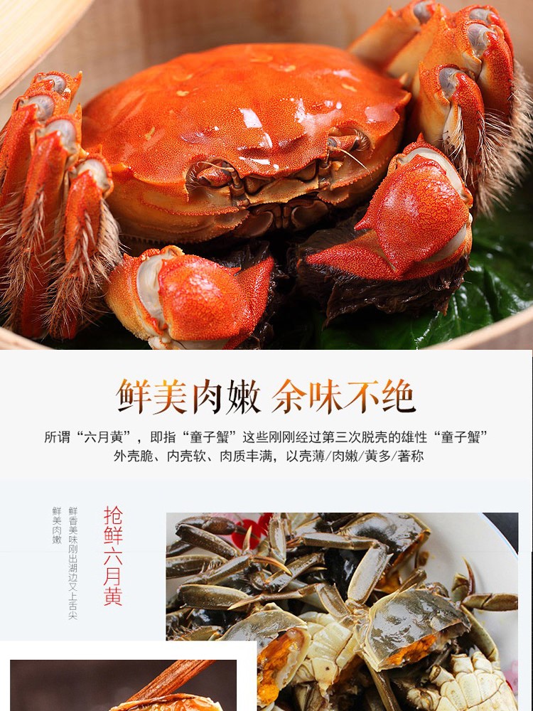 商家位置购买须知本单详情用户评价(0)【活蟹】蟹家长全母鲜活大闸蟹特大4.0-4.3两8只大螃蟹湖蟹现货批发海鲜水产香辣蟹满黄大蟹礼盒装 2.1-2.3两公母10只 超实惠