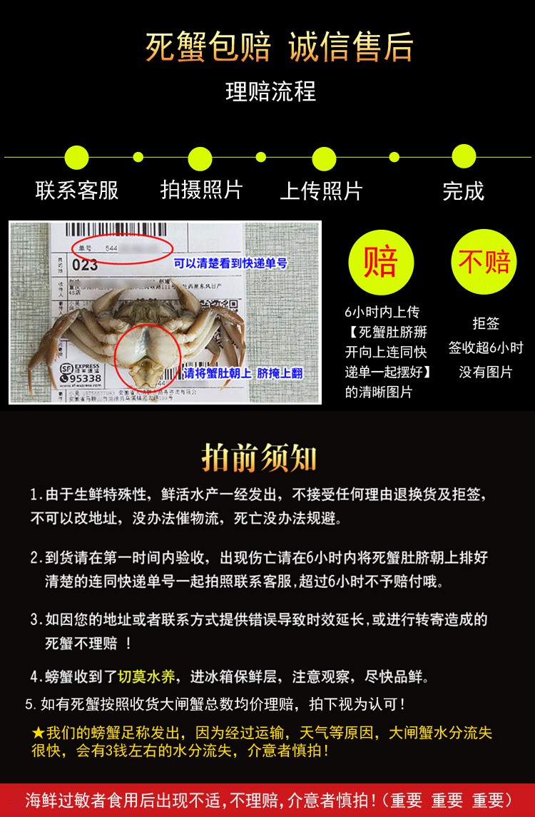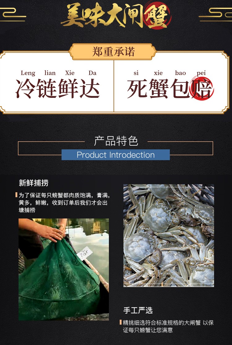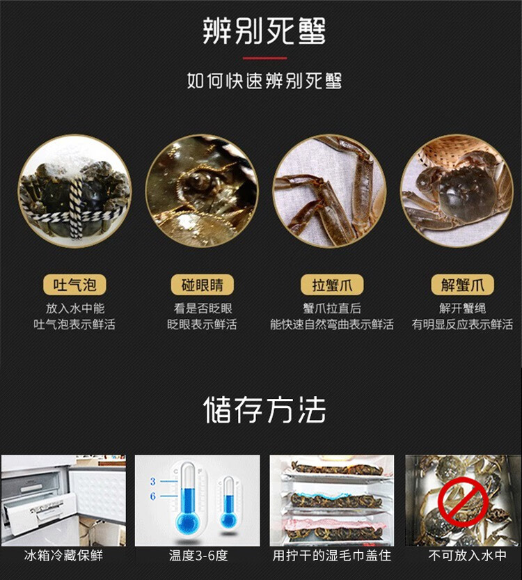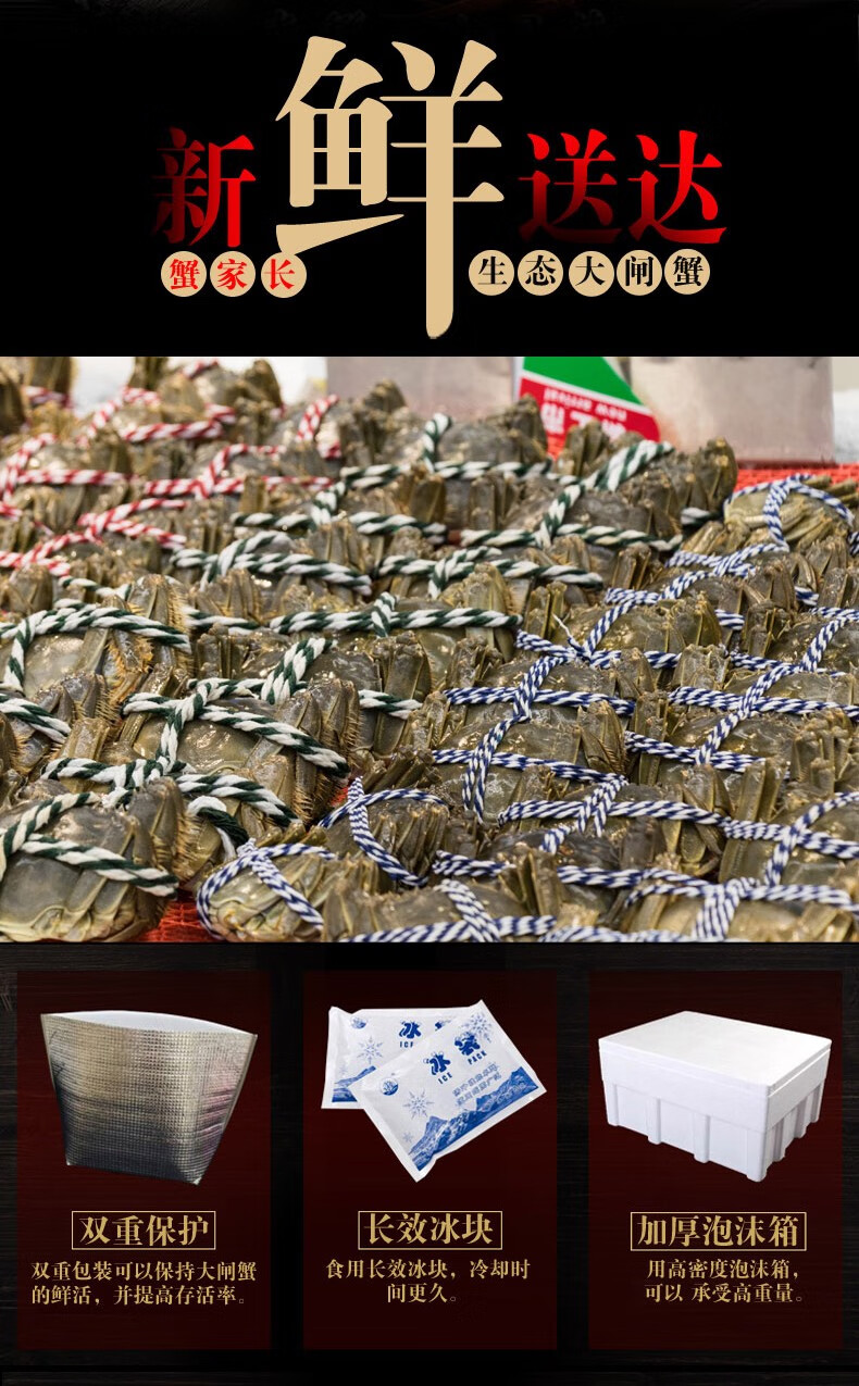 商家位置购买须知本单详情用户评价(0)【活蟹】蟹家长全母鲜活大闸蟹特大4.0-4.3两8只大螃蟹湖蟹现货批发海鲜水产香辣蟹满黄大蟹礼盒装 2.1-2.3两公母10只 超实惠