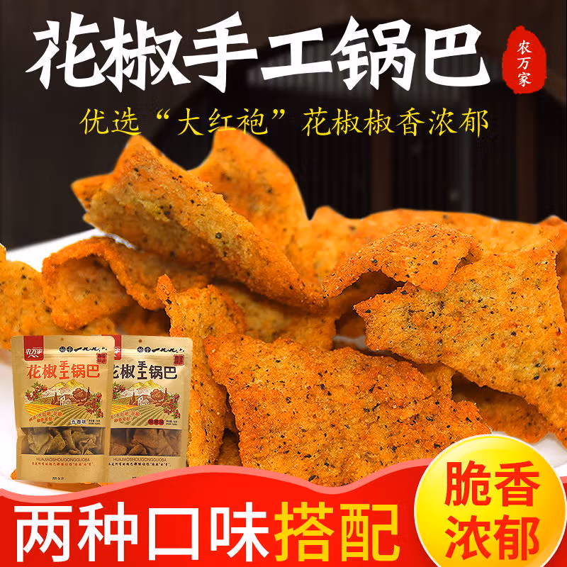 商品名称:陕西特产农万家手工花椒锅巴130克五香麻辣味传统膨化零食品小吃 130克花椒手工锅巴五香味1袋