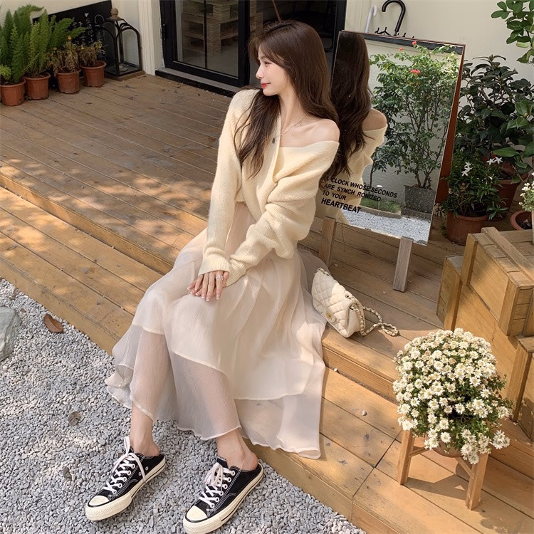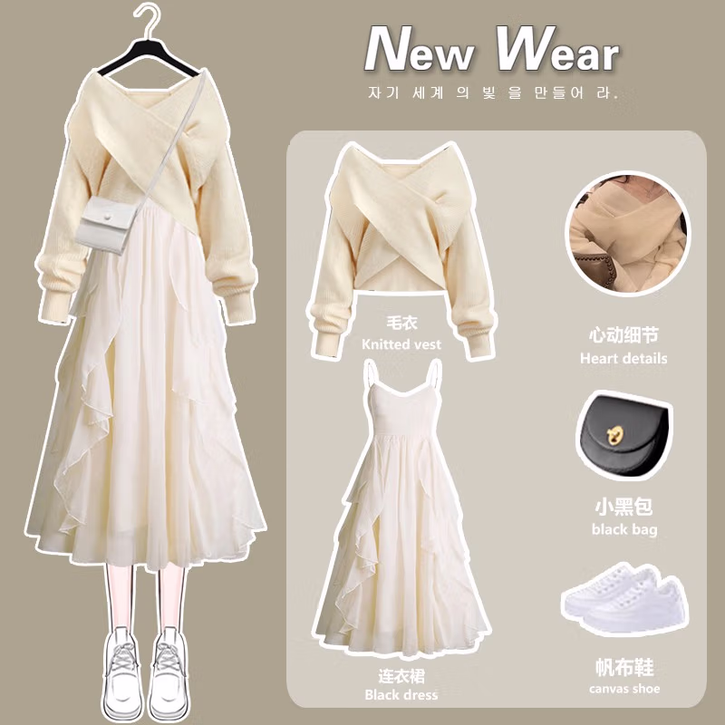 商品名称:拉夏贝尔连衣裙女装新品2022春季新款韩版时尚针织收腰显瘦小个子套装裙 红色 M