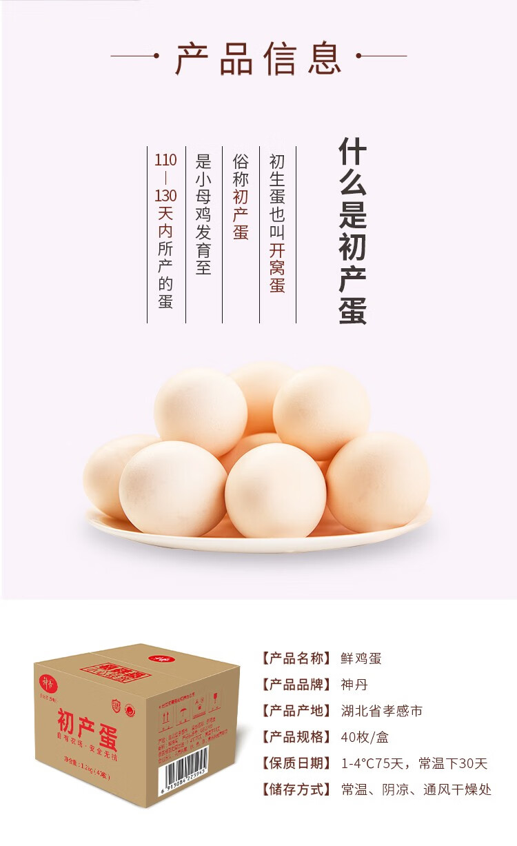神丹 初产鸡蛋 新鲜柴鸡蛋谷物饲养鸡蛋 40枚 1.2kg