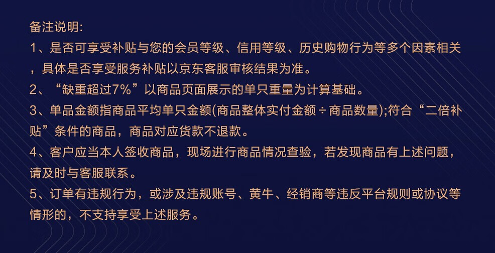 “优鲜赔”:京东平台第三方卖家销售的生鲜商品如出现破损或腐坏等问题,请在商品签收后48小时内提交“优鲜赔”申请,如客户提交申请时间在商家工作时间内(工作日:9:00-18:00,不包括周六日、春节假期及十一假期),商家100分钟内审核通过后即享补偿,无需返回商品;非鲜活易腐类产品除外,需上门取件。